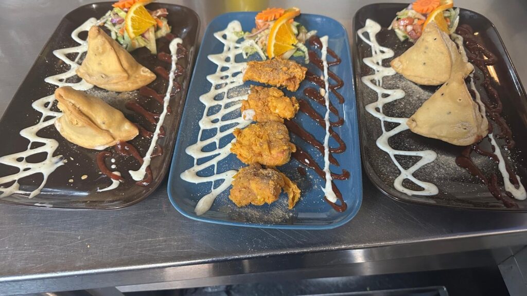 Krokante en gekruide voorgerechten zoals Murg Pakura, kebab en samosa om de eetlust op te wekken.